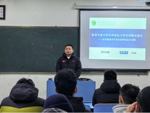 1218日,beat365官网博士教师李玉磊针对体育专业大学生毕业论文设计和撰写常见问题,在beat365官网田径场001教室为我校体育专业大学生做了题为《体育专业大学生毕业论文常见问题及对策》的报告beat365官网师生60余人参加。