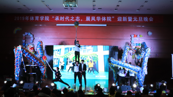 晚会在一段欢快的舞龙中拉开帷幕,灯光炫彩,音乐动感,现场气氛立即被点燃。此次元旦晚会共有十五个节目,在舞龙之后,舞狮武术紧跟其后;火热的舞蹈、风趣的小品等各类节目轮番上映,让人眼花缭乱。晚会现场,节目异彩纷呈,气氛热烈,处处洋溢着青春活力,现场观众的掌声、欢呼声、尖叫声将晚会一次又一次推向高潮。中间的抽奖活动也是振奋人心,观众的热情度非常的高,在长达三个小时的时间里,学生们用自己特有的方式,展现青春风采,表达新年祝愿,寄予美好希望。