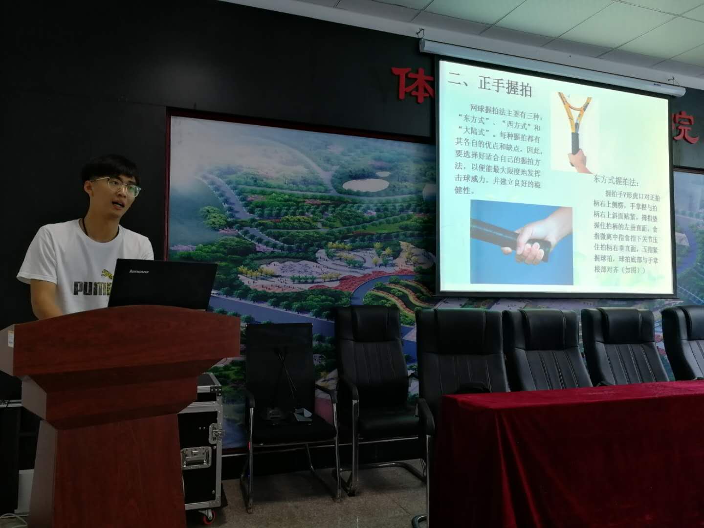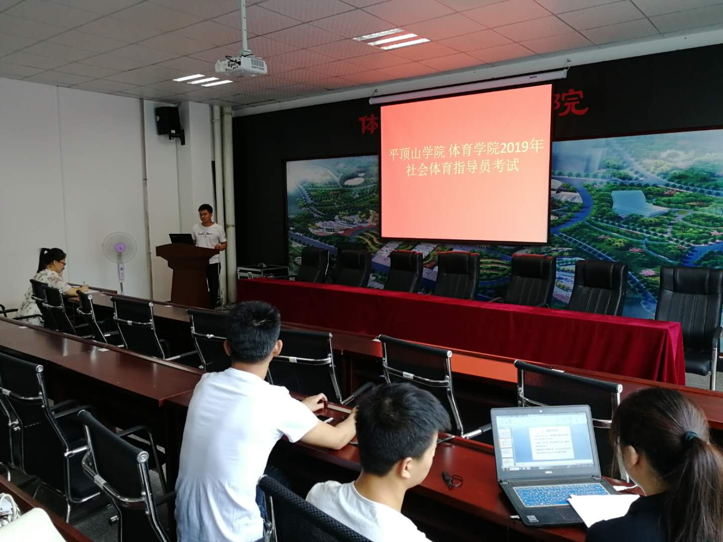 2019年6月10日上午,beat365官网2019年社会体育指导员考试在体育馆201和301顺利举行。来自2015级体育教育专业和社会体育指导与管理专业的66名学生参加了此次考试。本次考试采用说课加教案展示的形式进行,每位参加考试的学生结合自己专业特长,进行10分钟的说课,然后进行教案展示,评委根据学生表现进行现场打分。