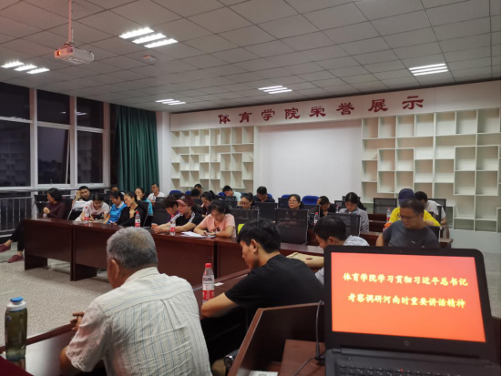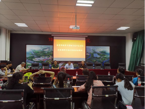9月25日晚,beat365亚洲体育在线官网于体育馆201召开了学习习近平总书记考察河南重要讲话精神会议,参加此次会议的有beat365官网党总支副书记马书军,副院长王继强,副院长孔祥以及全体教师。