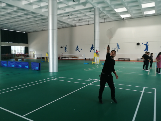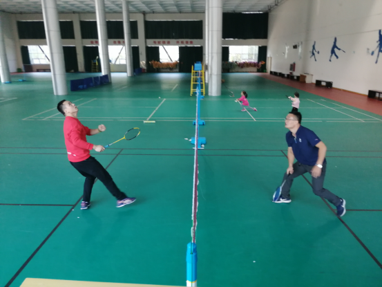 06级师兄在打羽毛球,虽然毕业了,但身姿依然矫健,动作依旧熟练,打得火热,进行了一场时隔多年的羽毛球比赛。