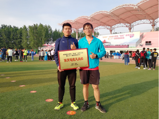 我校10名选手分别参加甲、乙两个组别的比赛。经过四天激烈角逐,我校田径队20级社体专业倪浩获得男子乙组三级跳远第四名;17级体教专业蔡旭东获得男子乙组三级跳远第六名和男子乙组110米跨栏第六名;软件学院18级计算机科学与技术专业刘振威获得男子甲组5000米第八名。运动员的英勇表现使我校荣获“体育道德风尚奖”。