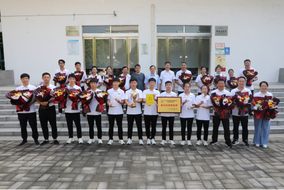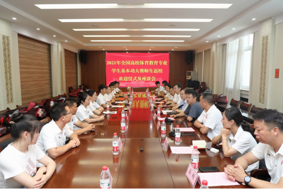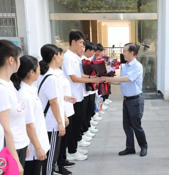 7月26日上午,我校举行仪式,欢迎在2021年全国高校体育教育专业学生基本功大赛上取得优异成绩的体育健儿凯旋。副校长张久铭带领相关职能部门负责人向载誉归来的运动员、教练员和工作人员一一送上鲜花,并表示热烈祝贺。