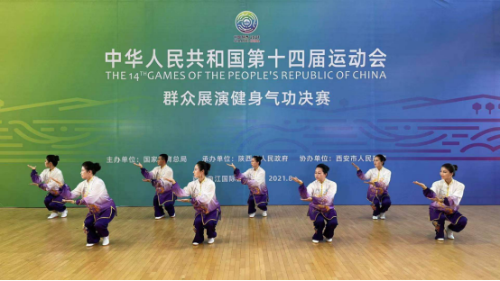 2021年8月24日---8月28日,由国家体育总局主办的、陕西省人民政府承办、西安市人民政府协办的中华人民共和国第十四届运动会群众展演健身气功决赛在西安曲江国际会议中心进行线下评审。本次比赛由全国各省、市、自治区,新疆生产建设兵团、中国香港等选拔出189支队伍参赛。我校教师李秀霞、蒋丽芳、郭利利、赵金凤、何春华、段高营、王春云、高芳8名教师组成的参赛队代表河南省参加比赛。